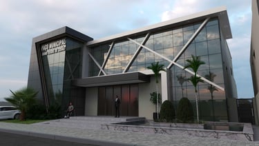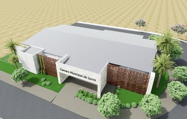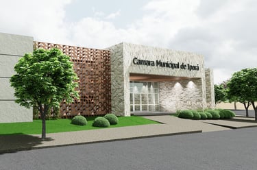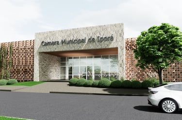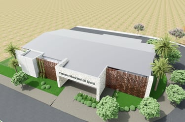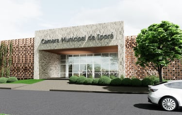 Edifício público com 1.051 m². Elaboramos os projetos estrutural, fundação, contenção, hidráulico e sanitário, além de toda a documentação técnica para licitação: planilha orçamentária, cronograma físico-financeiro e memorial descritivo.