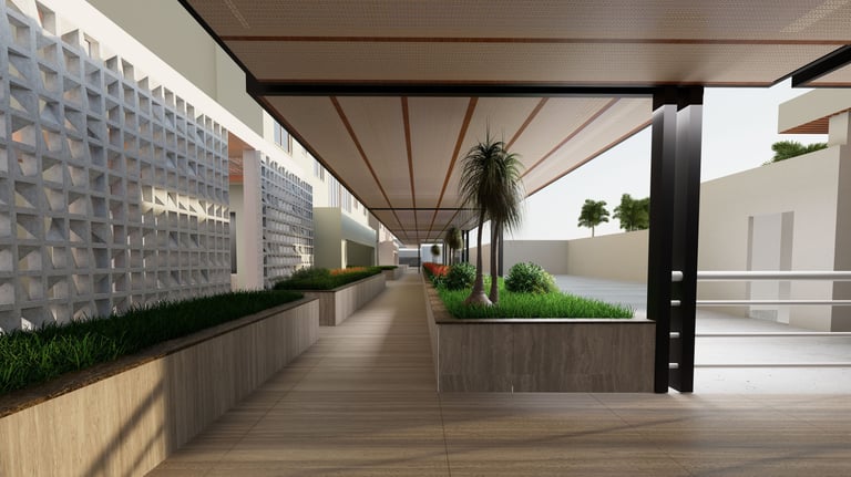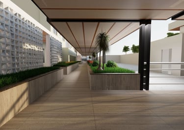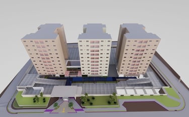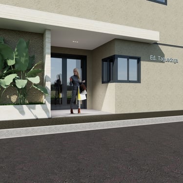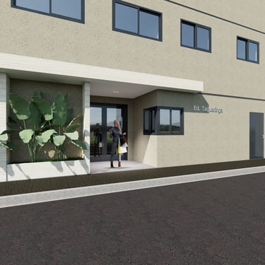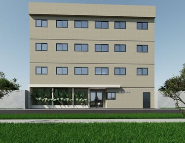 Projeto completo de prédio com 2.378,76 m², voltado para locação. Atuamos desde a concepção arquitetônica até os projetos hidráulico, sanitário, elétrico, fundação e estrutura, com foco em soluções econômicas.