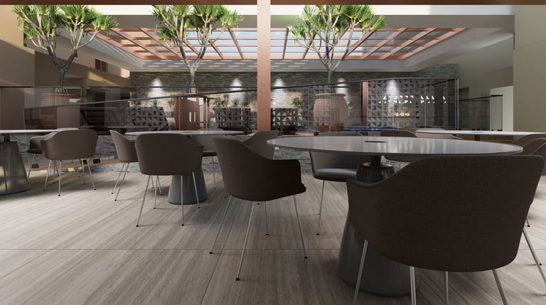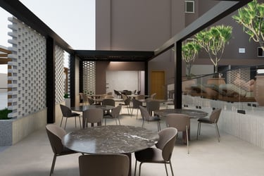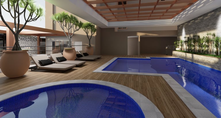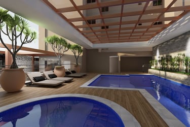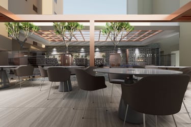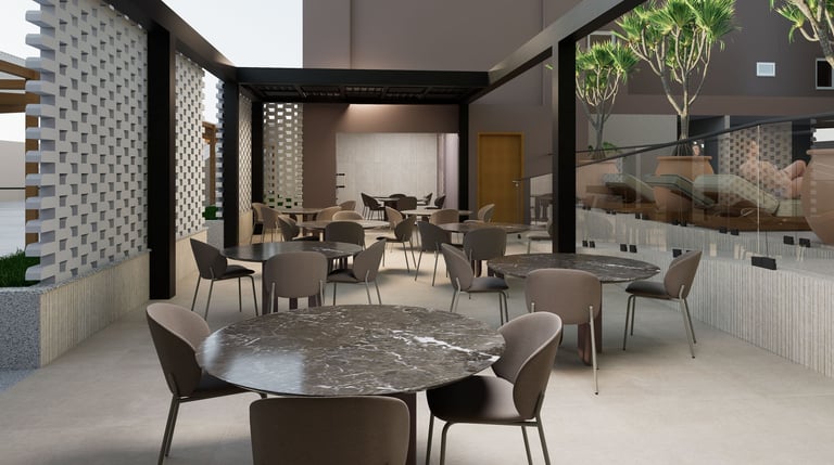 Reforma das áreas comuns com foco em melhorias na portaria, privacidade da piscina e aproveitamento de espaços ociosos. Desenvolvemos os projetos de arquitetura, interiores e paisagismo nesta primeira fase.