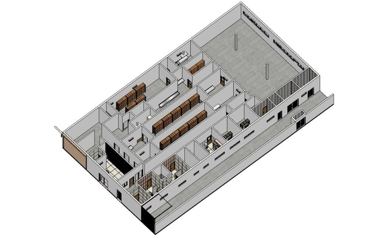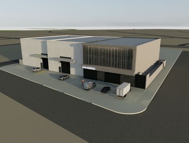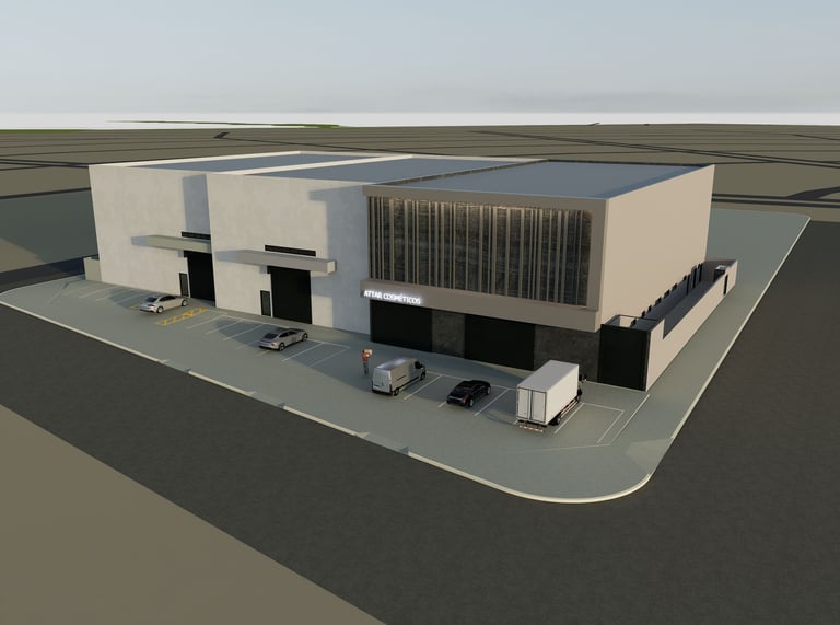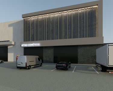 Conjunto de galpões comerciais e industriais com área construída de 4.353,00 m². Desenvolvemos o projeto da área para atender aos diversos segmentos que já estão sendo implantados no local. Os projetos desenvolvidos foram: Projeto de vigilância sanitária, projeto executivo, projeto estrutural, complementares e projeto de interiores.